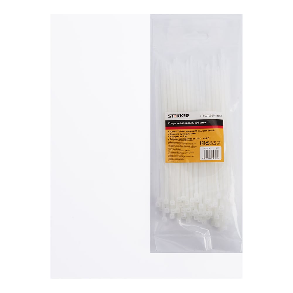 Хомут STEKKER NYCT25-150 нейлоновый 2.5x150 мм, d пучка max 35 мм, нагрузка 8 кг, белый 32773