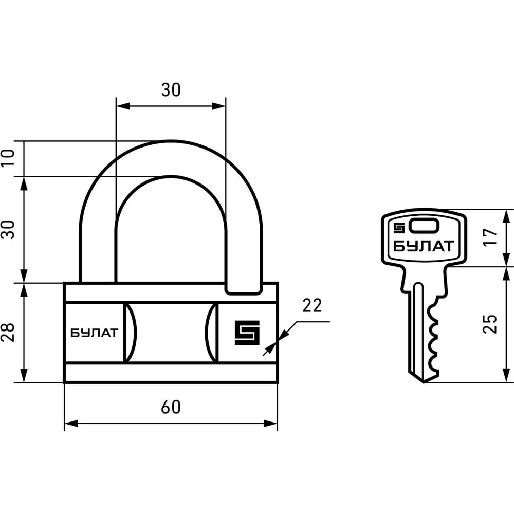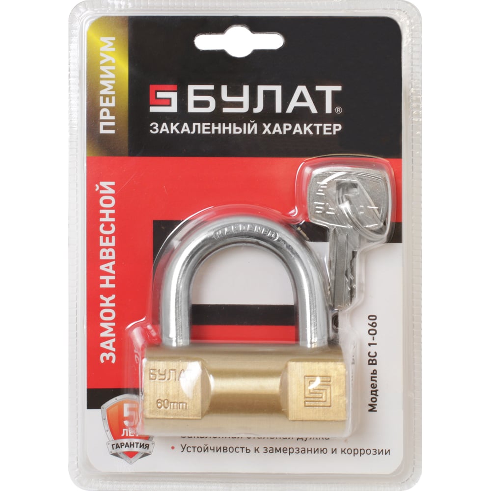 Навесной замок БУЛАТ ВС 1-О60 латунный 5 ключей, d=10 мм 13644