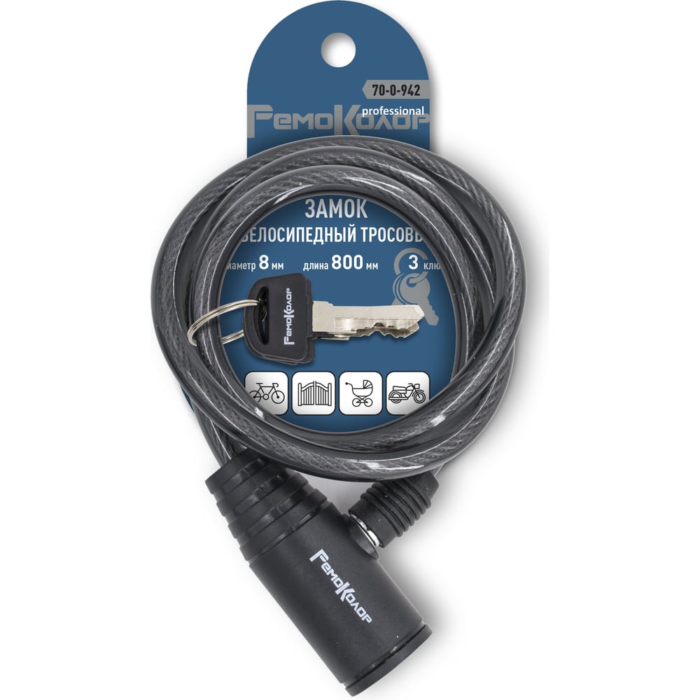 Тросовый велосипедный замок РемоКолор 70-0-942