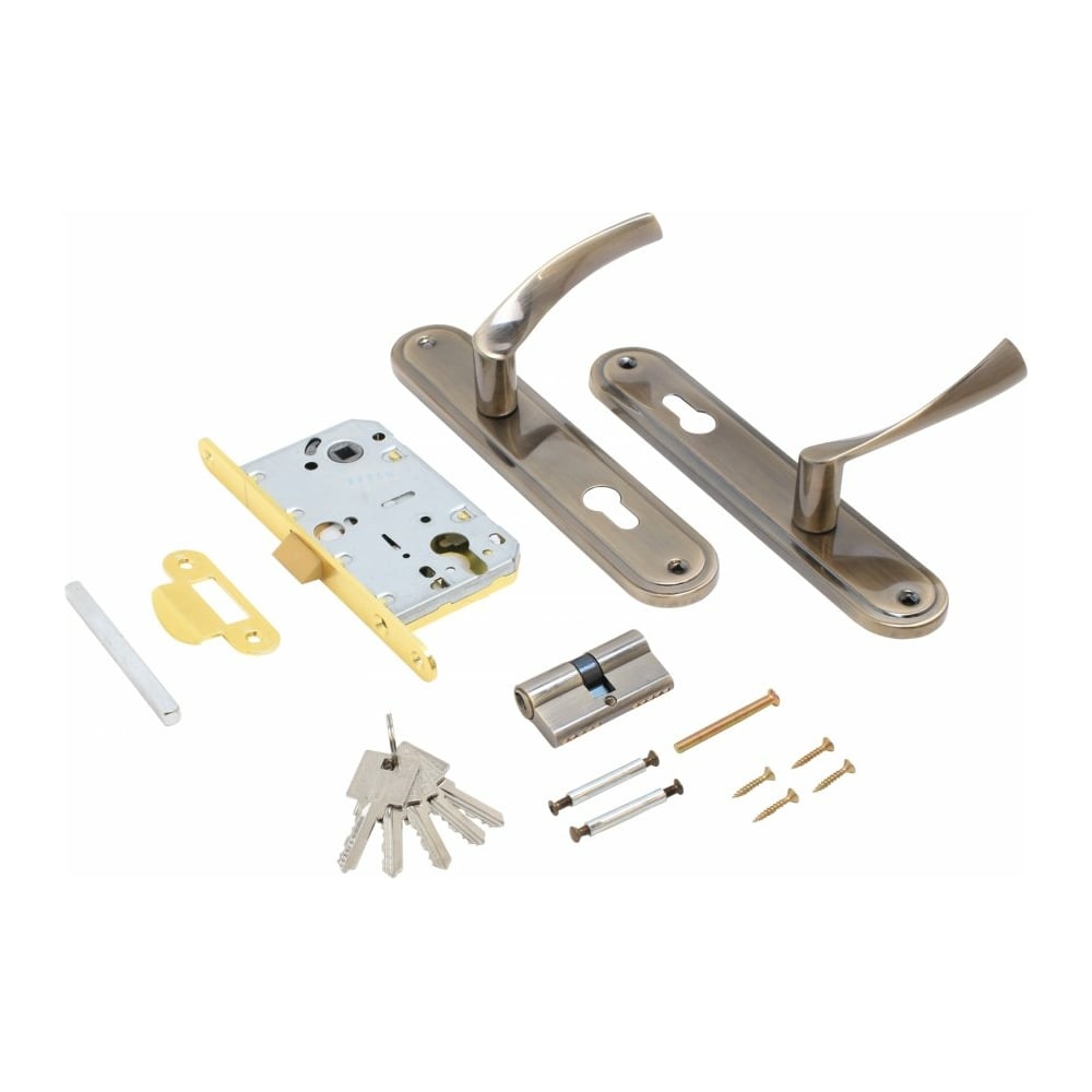 Врезной замок с ручками Аллюр ЗВ 7-103/85 AB старая бронза 14151