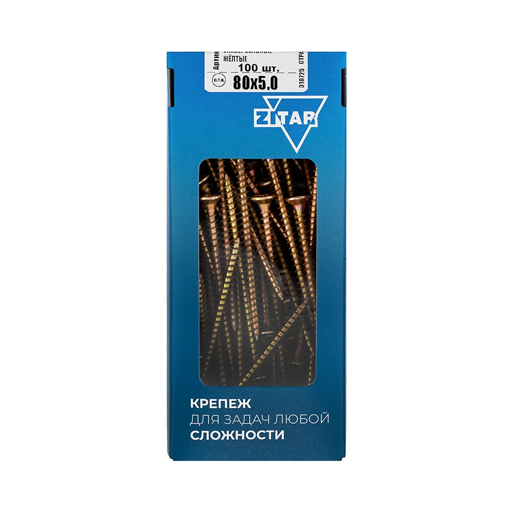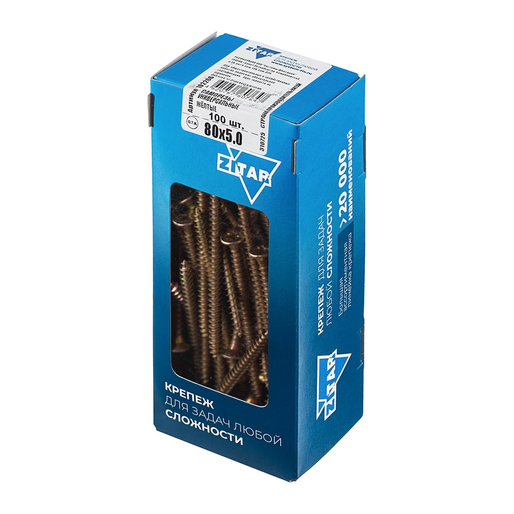 Универсальные саморезы, желтые, 80x5,0 мм, 100 шт., коробка с окном Zitar 102266