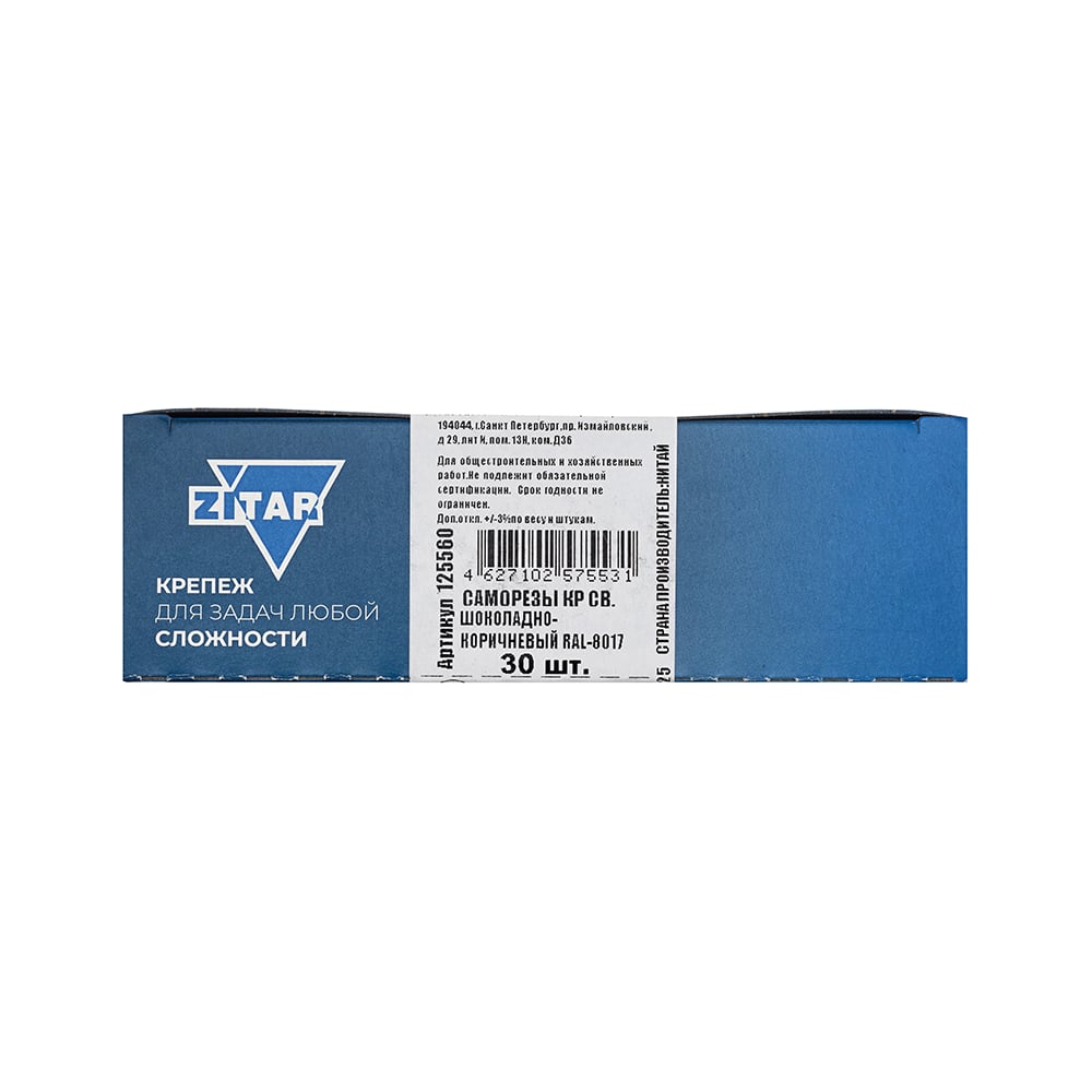 Саморез КР со сверлом, 4,8x70 мм, RAL-8017 шоколадно-коричневый, 30 шт. в коробке с окном Zitar 125560