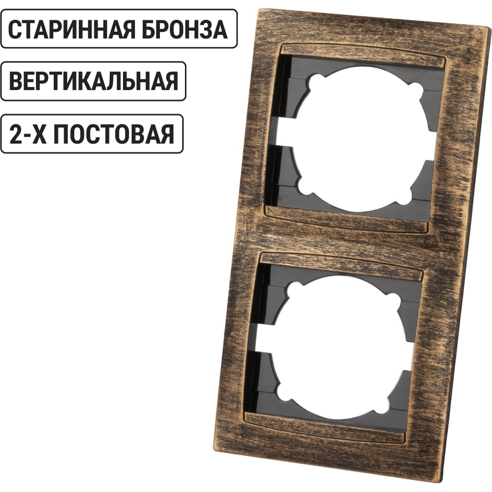 Рамка 2-х постовая вертикальная TDM ELECTRIC старинная бронза, серия "Лама" SQ1815-0779