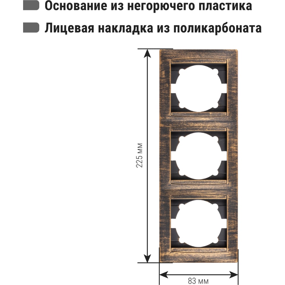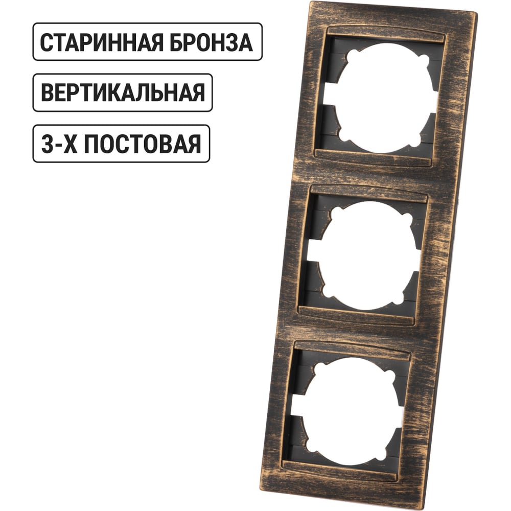 Рамка 3-х постовая вертикальная TDM ELECTRIC старинная бронза, серия "Лама" SQ1815-0780