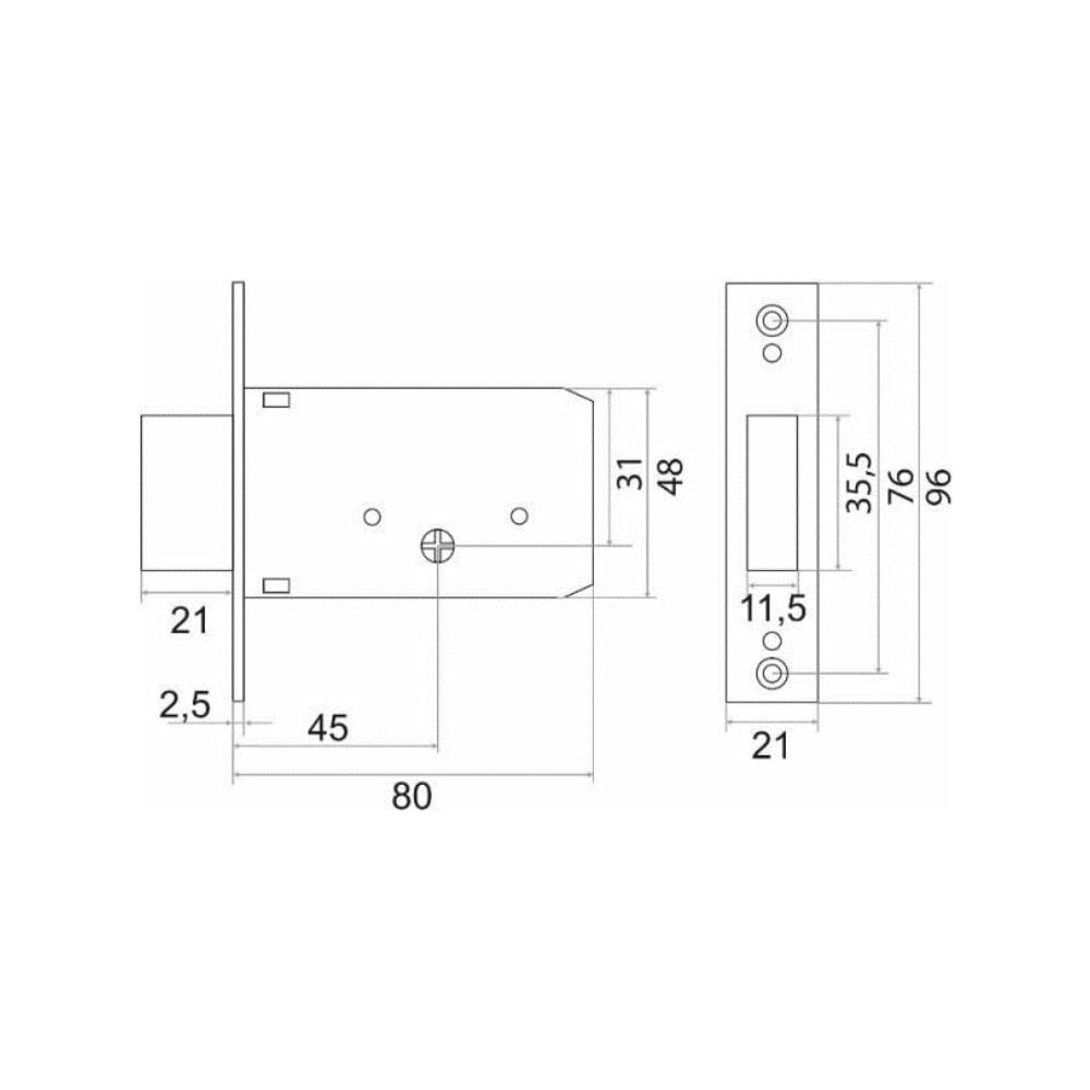 | Удаление ключевого отверстия (Backset) | 45 мм |
