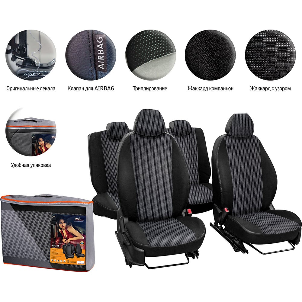 Чехлы Airline для Lada X-RAY, Лима, 12 предметов, задняя спинка 1/3, жаккард-кожзам, черные ACCS-L-43