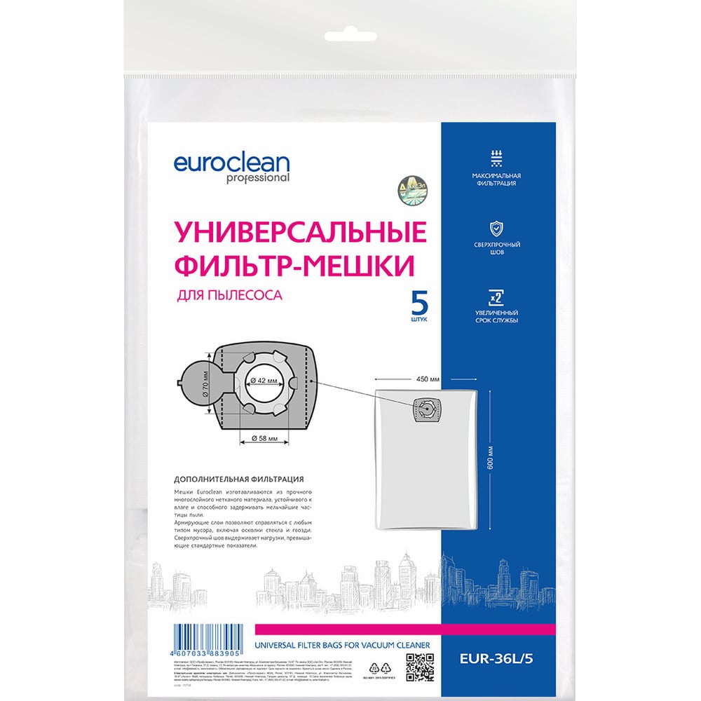 Фильтр-мешки универсальные 5 шт. для профессиональных пылесосов до 36 л EURO Clean EUR-36L/5