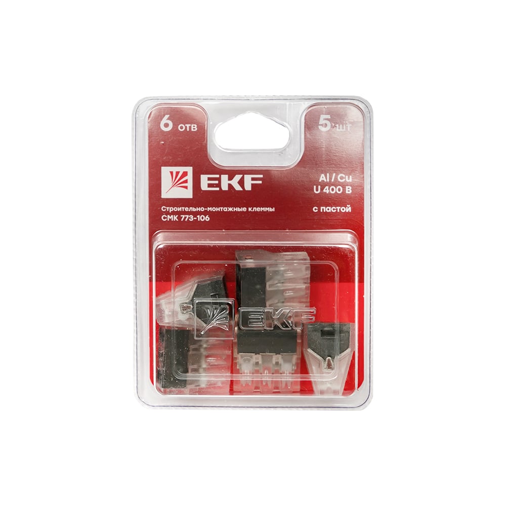 Строительно-монтажная клемма EKF СМК 773-106 6 отверстий, 1,0-2,5мм2, блистер, 5 штук, PROxima plc-smk-106b