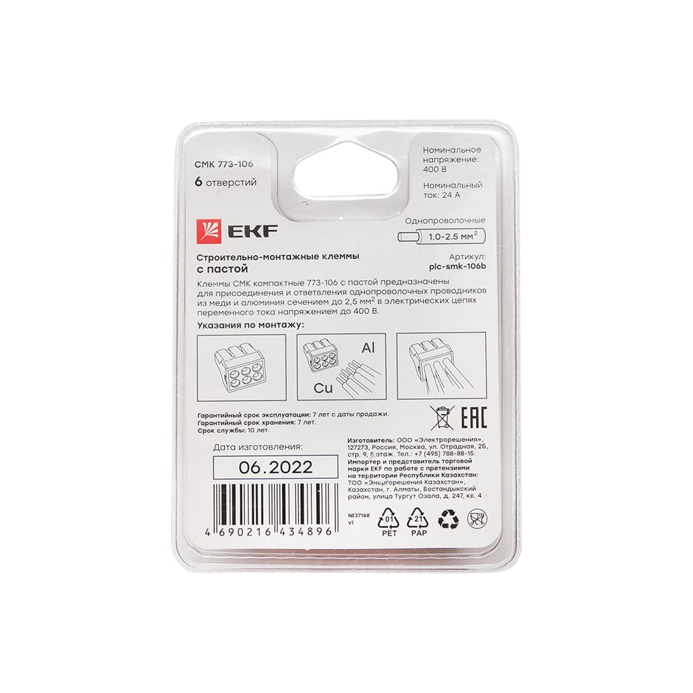 Строительно-монтажная клемма EKF СМК 773-106 PROxima plc-smk-106b