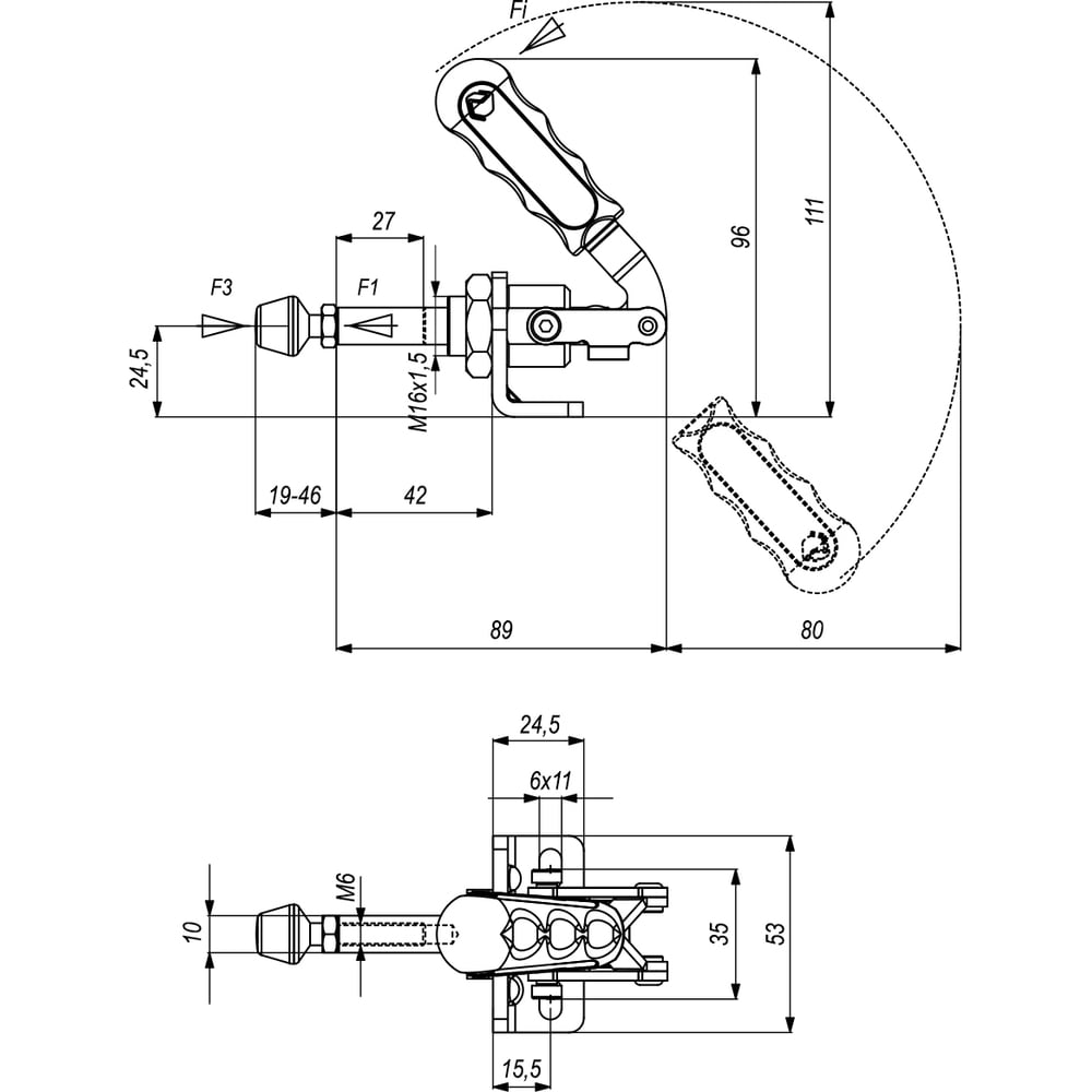 Зажим механический плунжерный с кронштейном KUKAMET, усилие 173 кг 511-2