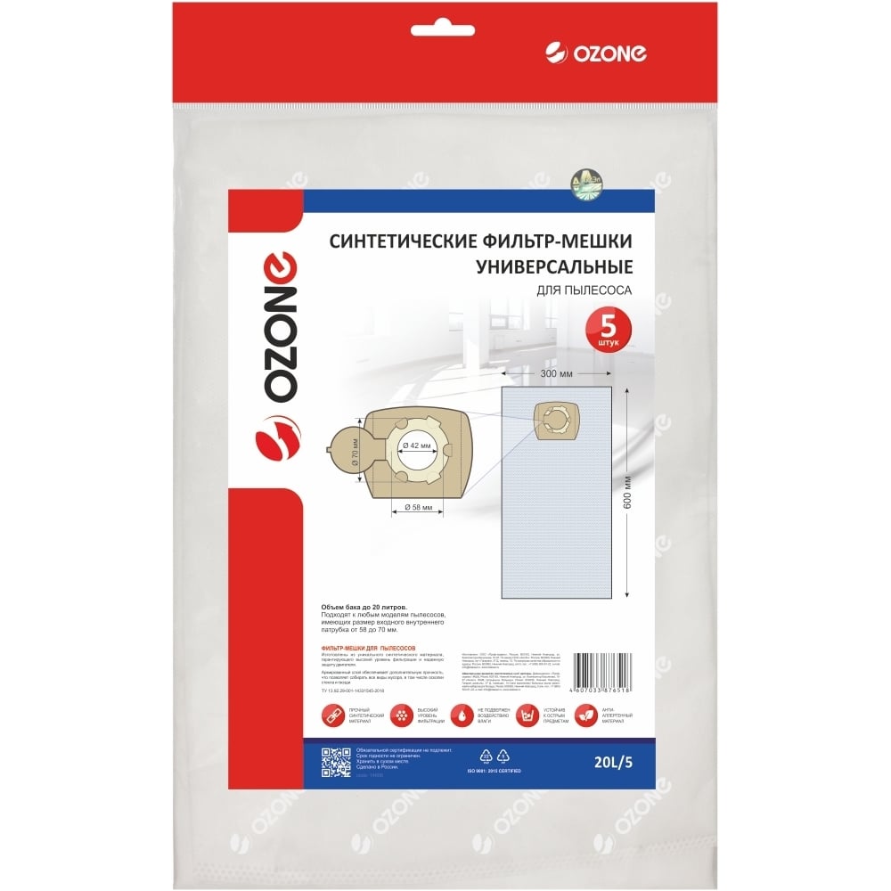 Универсальные фильтр-мешки для проф. пылесосов OZONE арт. 20L/5