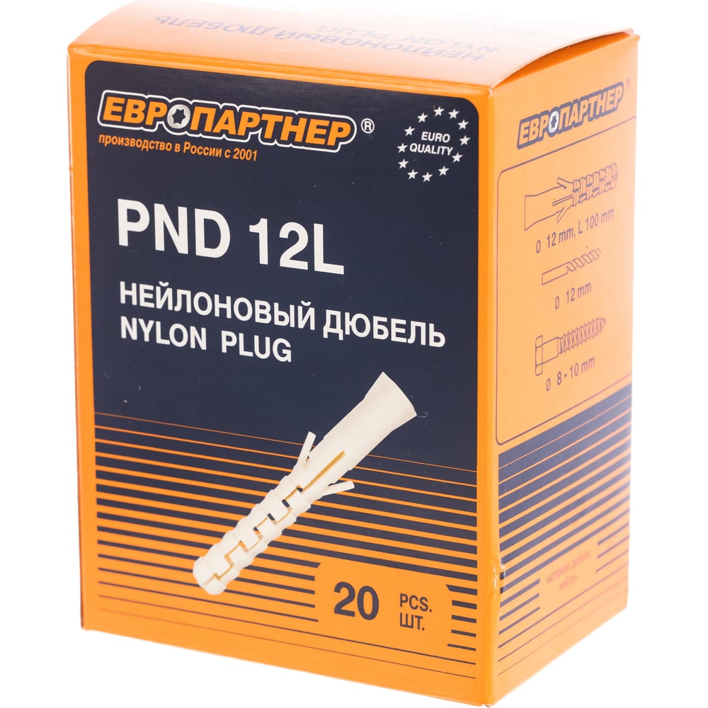 Нейлоновый дюбель ЕВРОПАРТНЕР PND-12L 12х100 mm удлиненный, 20 шт 87118