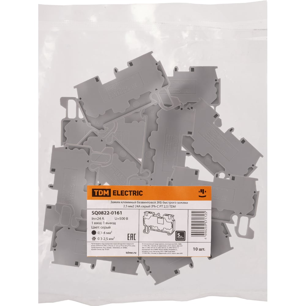 Безвинтовой клеммный зажим TDM ELECTRIC ЗКБ быстрого зажима, 2.5 кв. мм, 24А, серый (Ph-C PT 2,5) SQ0822-0161