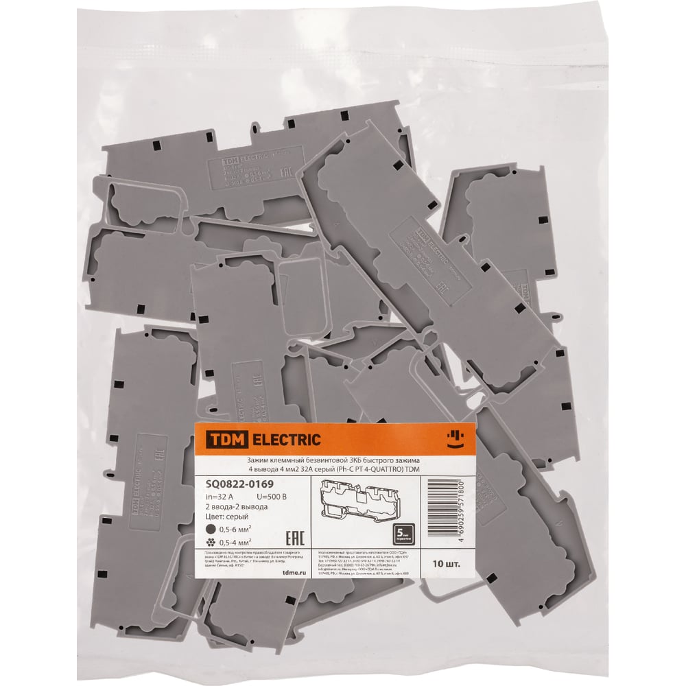 Безвинтовой клеммный зажим TDM ELECTRIC ЗКБ быстрого зажима, 4 вывода SQ0822-0169