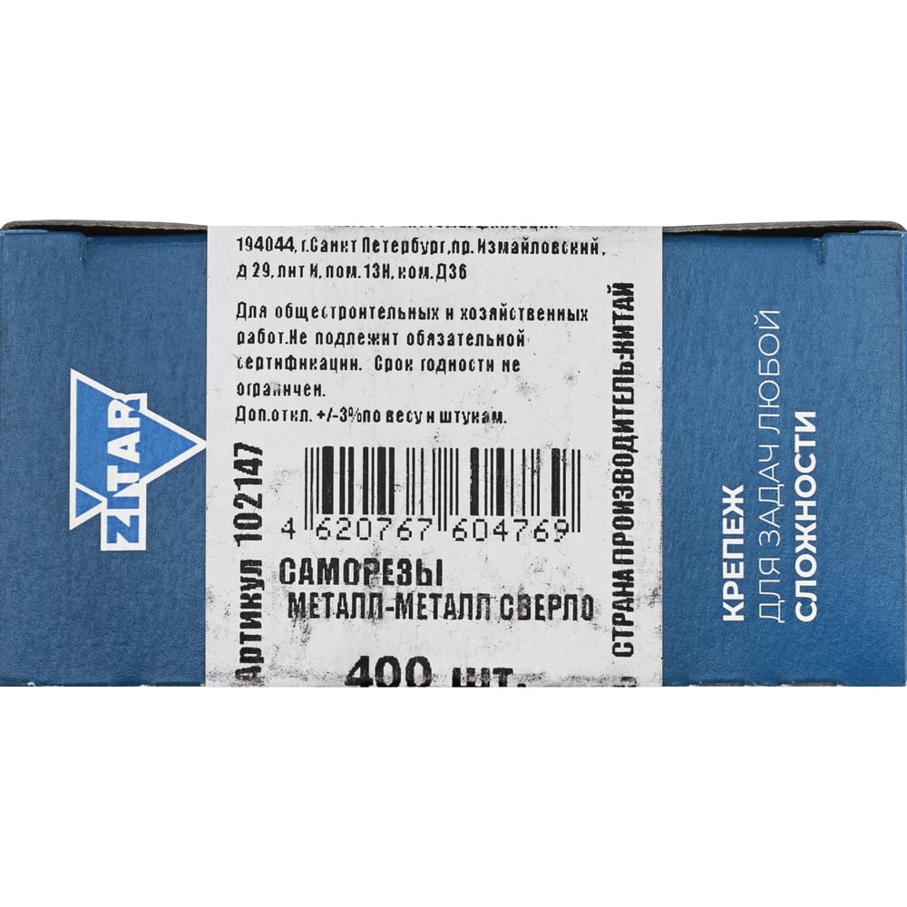 Саморез Zitar ШСММ св. 3,5x11 400 шт коробка с окном 102147