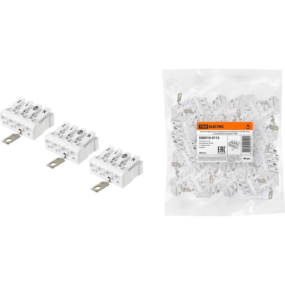 Пружинная соединительная клемма TDM ELECTRIC КСПз4-2L+N+PE (16 A; с заземлением под винт) SQ0510-0112