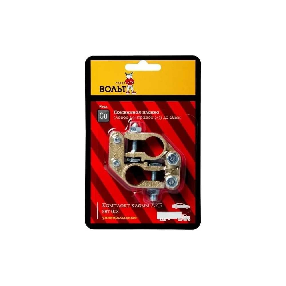 Клеммы АКБ в комплекте StartVOLT сплав цинка и меди, прижимная планка , правое до 50 мм SBT 008