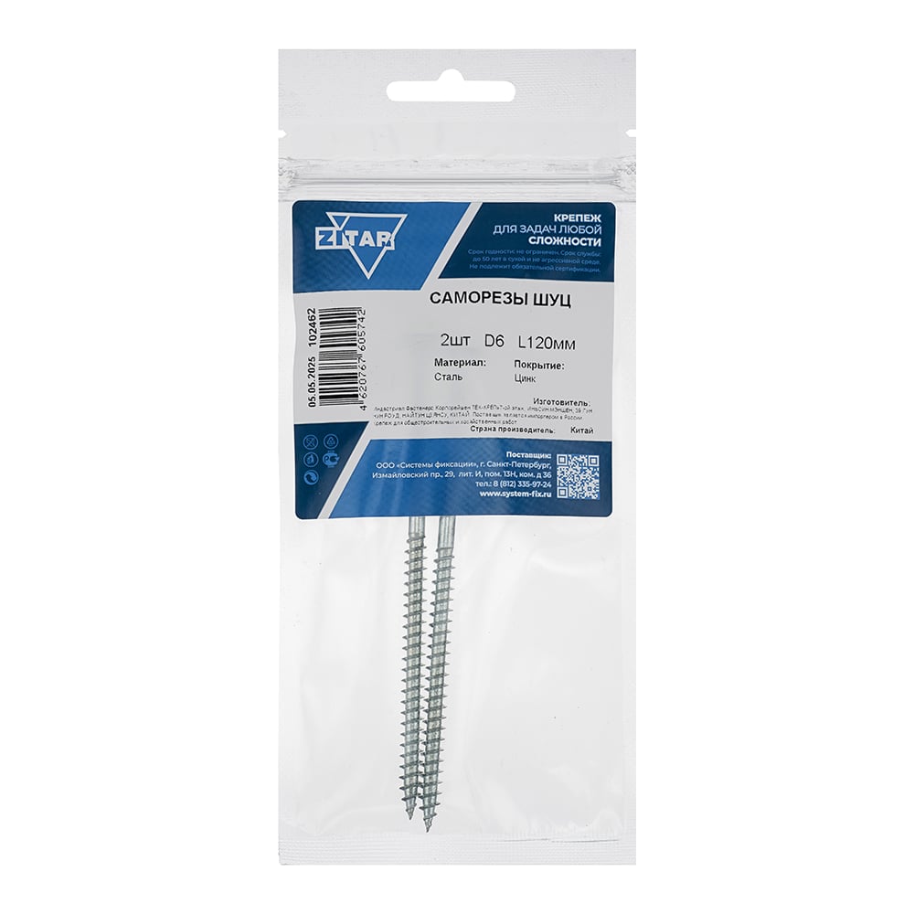 Саморез ШУц с потайной головкой 6,0x120 мм, 2 шт., пакет Zitar 102462