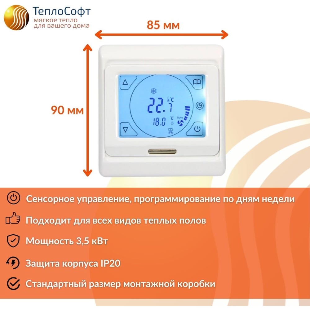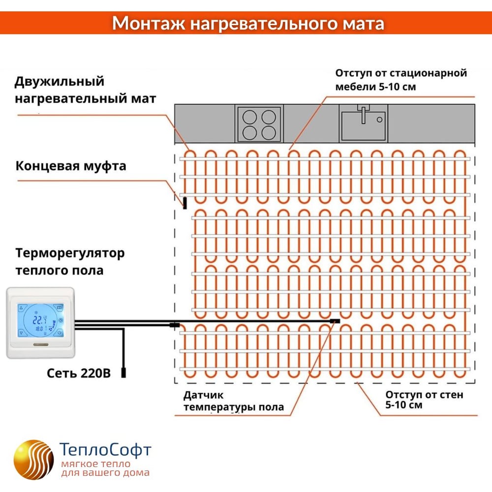 Нагревательный мат ТеплоСофт Профи 1 м2 150Вт с сенсорным терморегулятором 1150/4