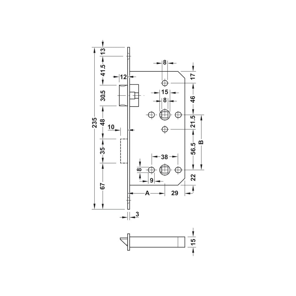 Врезной замок Hafele WC черный, 55/20 911.25.431