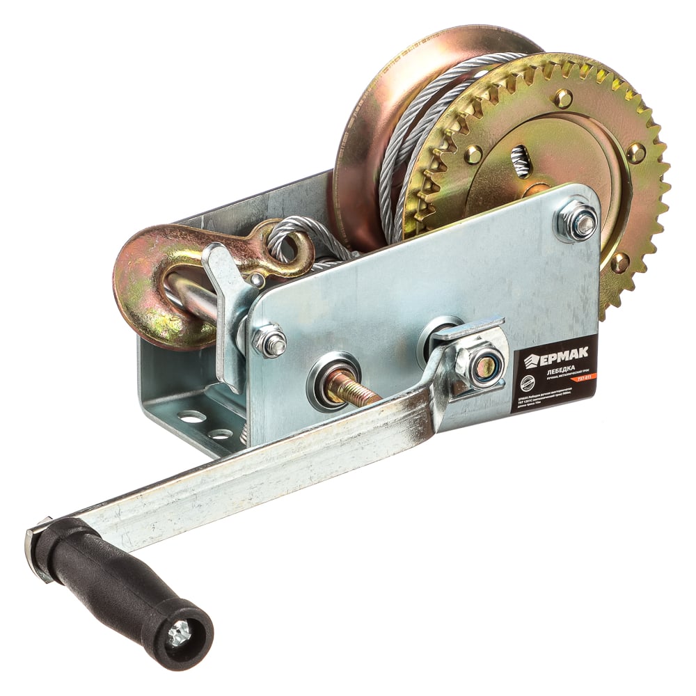 Ручная шестеренчатая лебедка ЕРМАК TRT 1201C (металлический трос) 900кг, длина троса 10м 737-011