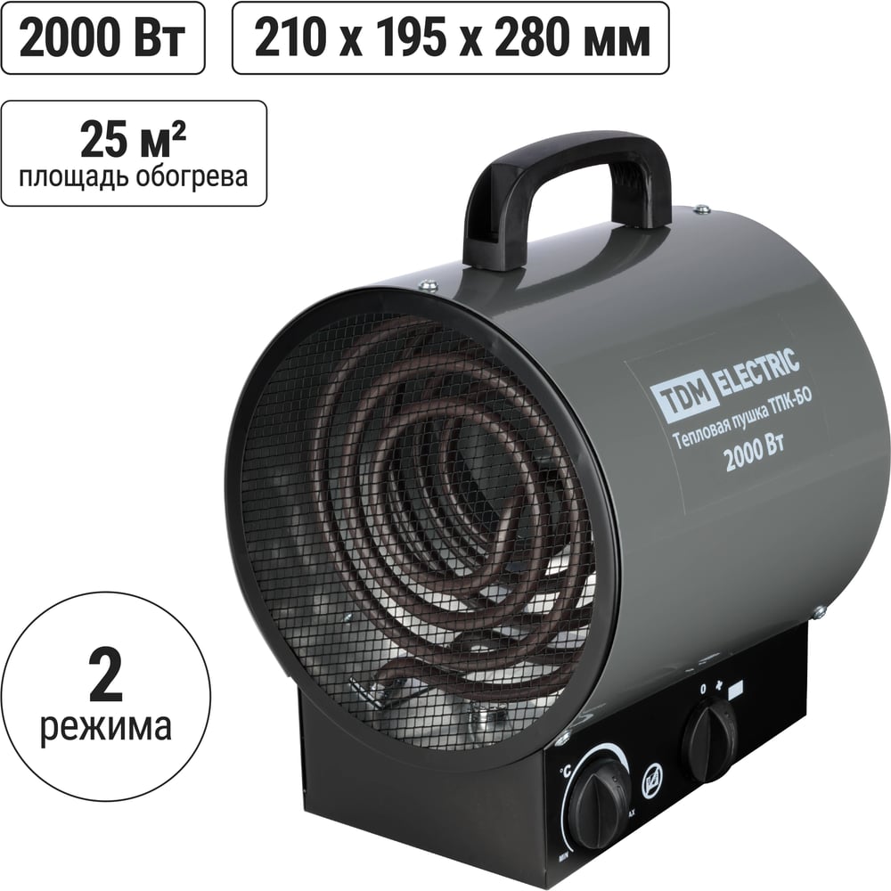 Тепловая пушка TDM ELECTRIC тпк-бо, 2 квт, круглый корпус, терморегулятор, SQ2520-0107