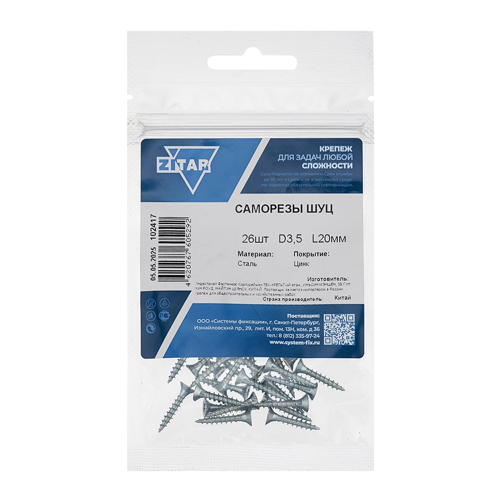Саморез ШУц с потайной головкой 3,5x20 мм, 26 шт., пакет Zitar 102417