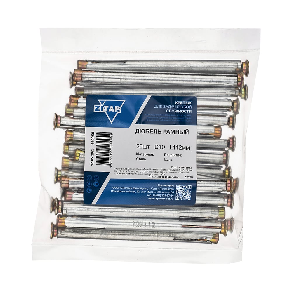 Дюбель металлический рамный 10x112 мм, 20 шт в пакете Zitar 110058