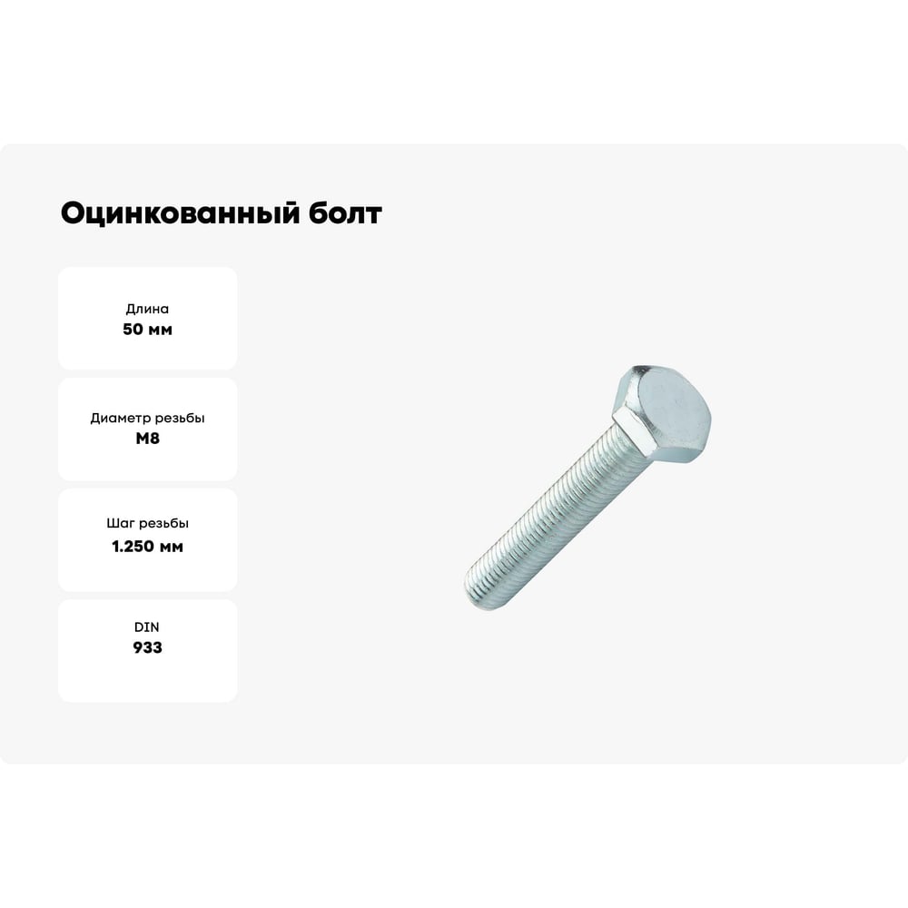 Оцинкованный болт Промрукав М8x50, DIN 933, 50 шт. PR08.2751