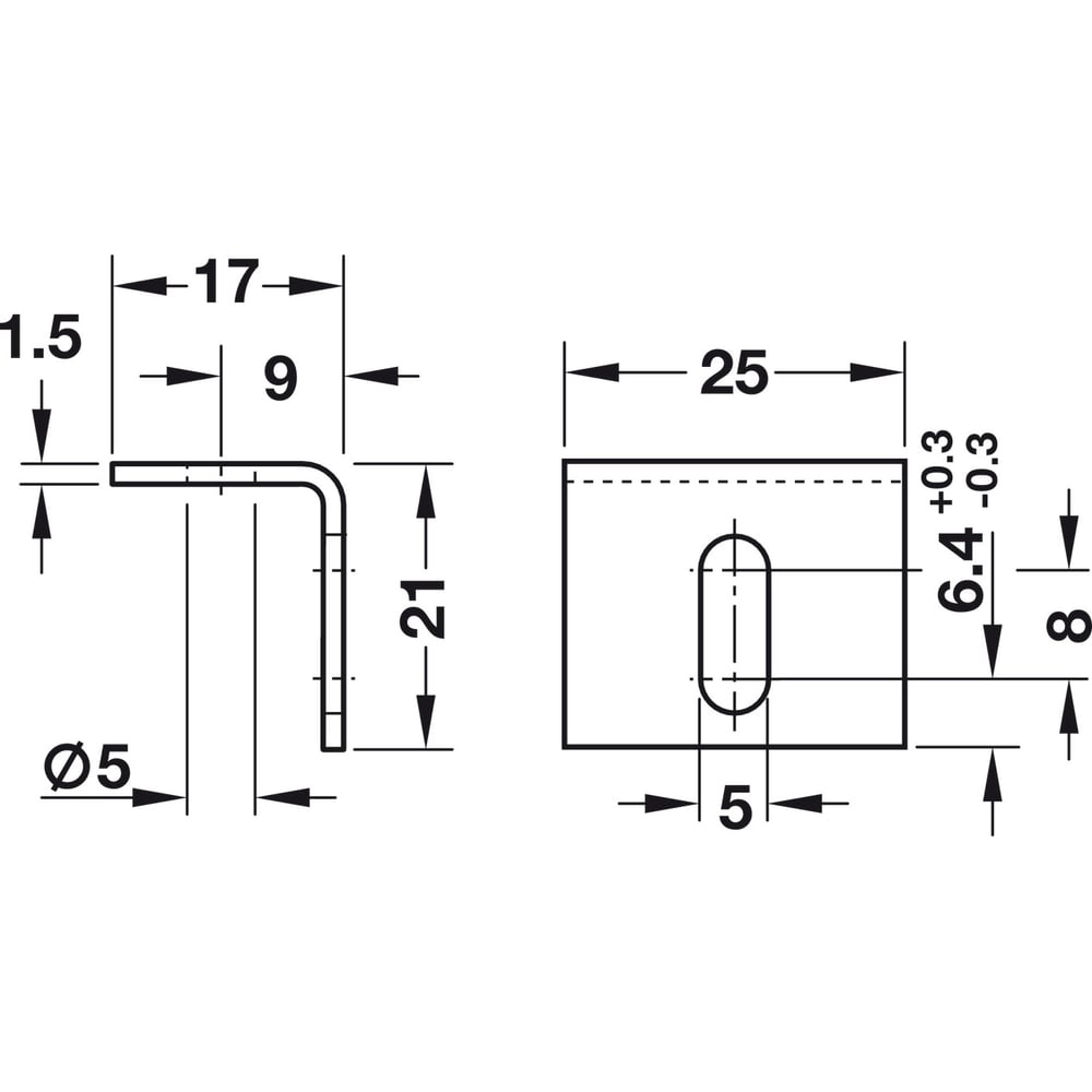 Соединительный угол Hafele сталь никелированная, с продольным пазом 260.25.703