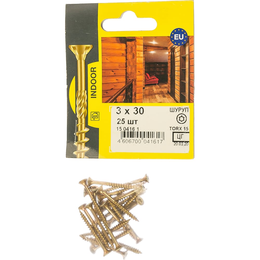 Конструкционный шуруп для дерева с фрезой ЕВРОПАРТНЕР потай, ж/п Torx 10 3.0х30, 25шт. 15 0416 1