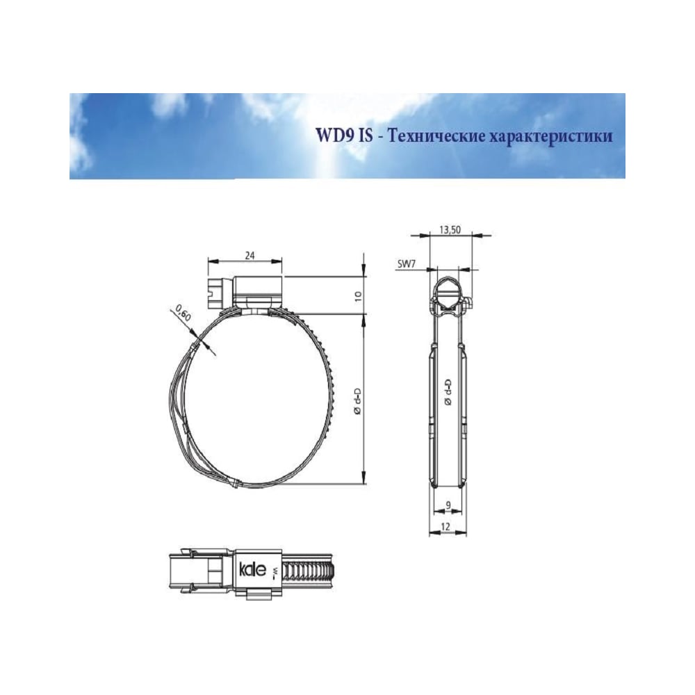 Хомут с пружинной вставкой KALE WD IS 16-25/12 W3 уп. 10 шт. 16-25 WD1273IS