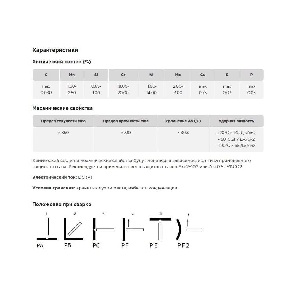 | Аналоги | ER 316LSi; G 19 12 3 LSi; СВ-04Х19Н11М3 |