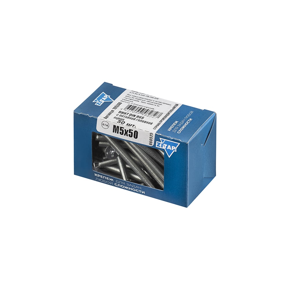 Винт DIN965 с потайной головкой оцинкованный М5x50 мм, 50 шт, коробка с окном Zitar 105240