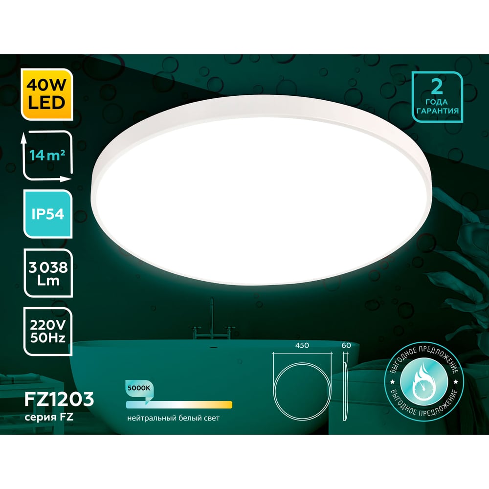 Габариты без упаковки 450х60 мм Лампа в комплекте есть Поверхность плафона/арматуры -/матовая Цвет плафона/арматуры -/белый Вес нетто 1.22 кг Мощность светильника 40.5 Вт Цоколь встроенные светодиоды(LED) Тип лампы встроенные светодиоды Цветность естественный белый (3300-5000 К) Защита от пыли и влаги IP54 Материал корпуса пластик Вид крепления накладной Коллекция ORBITAL Форма корпуса круг Влагозащищенный да Пылезащищенный да Световой поток 3038 Лм Цветопередача 80 Ra Тип колбы плата LED Высота 6 см Мощность лампочки 40.5 Вт Основной цвет белый Min температура эксплуатации -10 °С Max температура эксплуатации 40 °С Диаметр 45 см Количество и напряжение элементов питания 220В Элементы питания сеть Взрывозащищенный нет Датчик движения нет Защитная решетка нет Датчик звука нет Вандалоустойчивость нет С датчиком освещения нет С пультом управления нет