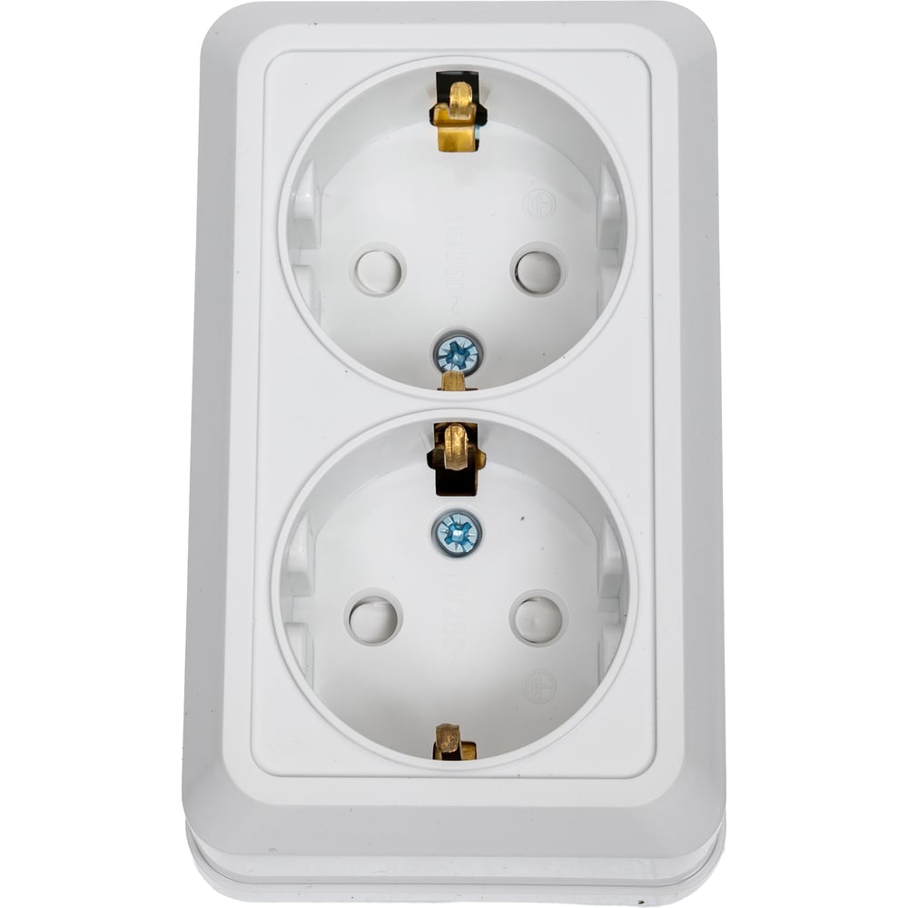 Двойная розетка IN HOME с заземлением, со шторками BOLLETO белая накладная 7128х 4690612000961