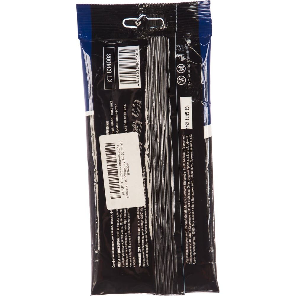 Влажные салфетки для стеклянных поверхностей KRAFT 20 шт KT 834008