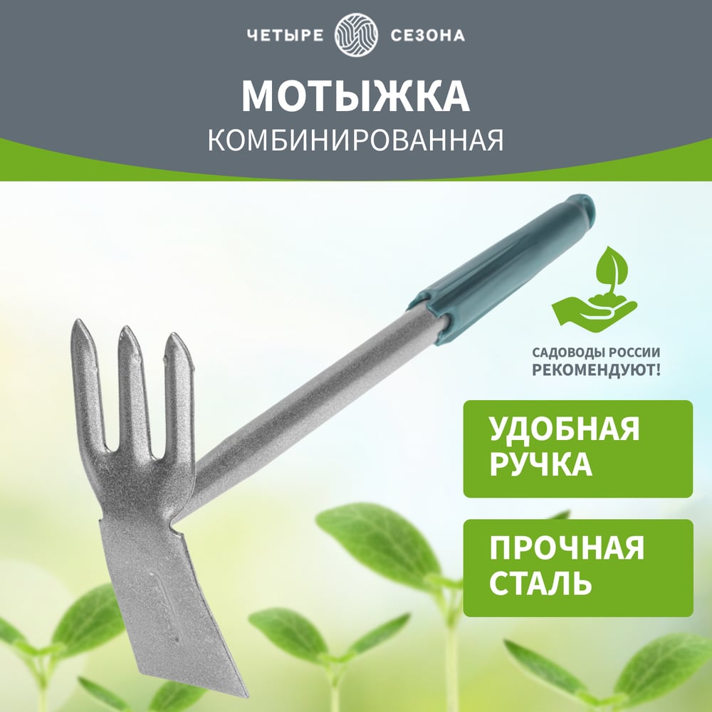 Комбинированная мотыжка Четыре сезона 3 прямых зубца с металлической ручкой 64-0015