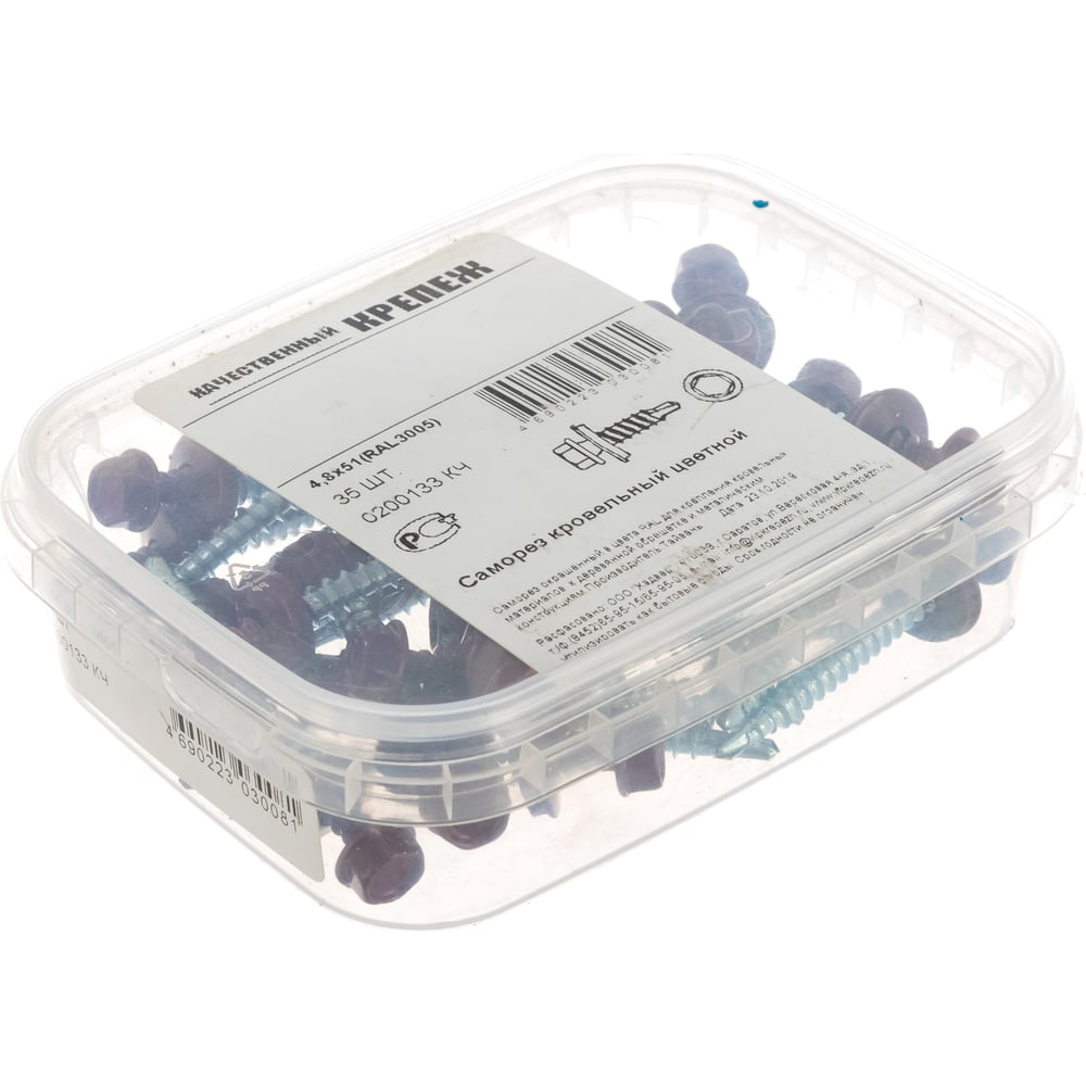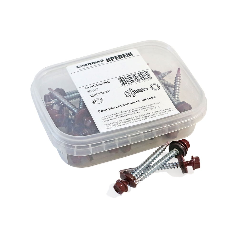 Кровельный саморез Качественный КРЕПЕЖ красное вино RAL 3005, 4.8х51 мм, 35 шт 0200133 КЧ