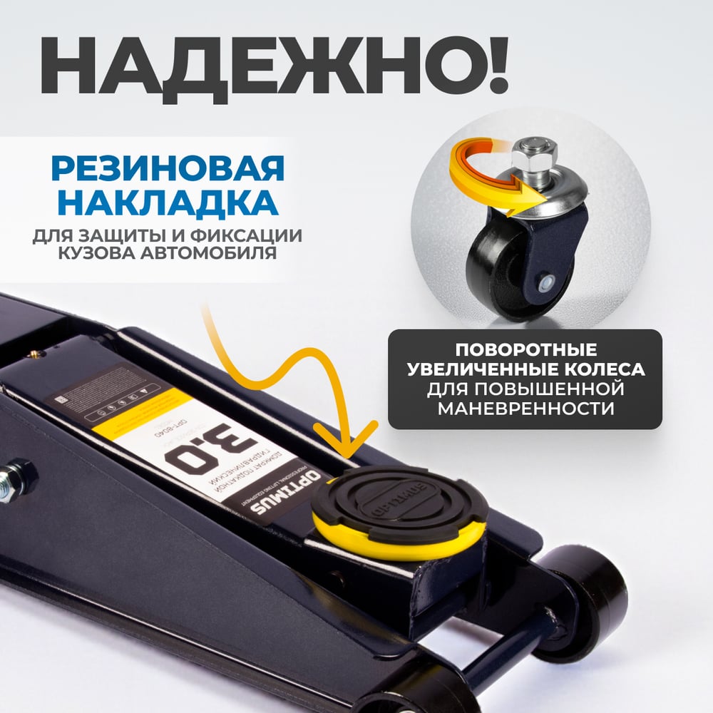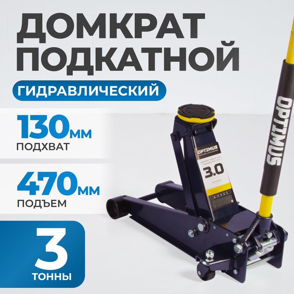 Подкатной гидравлический домкрат OPTIMUS г/п 3,0 т, высота 130-470 мм OPT-8040