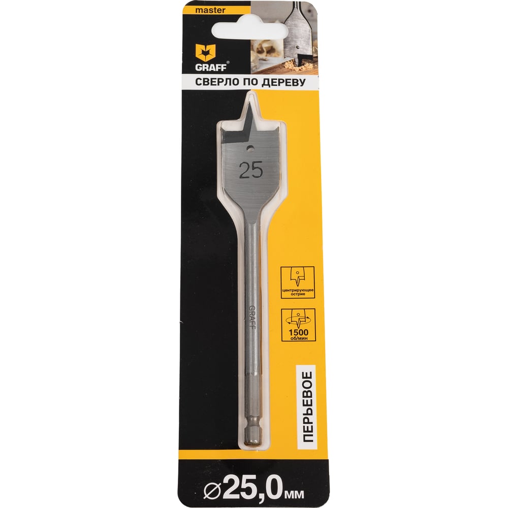 Сверло перьевое (перовое) по дереву 25x150 мм в блистере GRAFF 8825150