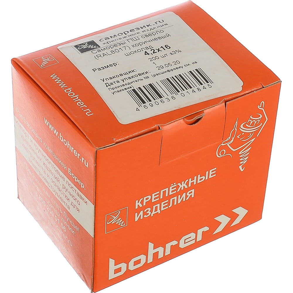 Саморез по металлу с пресс-шайбой Саморезик 4,2х16 RAL8017 кор. шоколад острый 200шт DGV-4,2/16-200-RAL8017