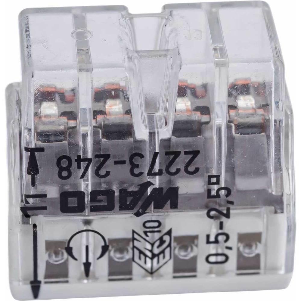 Соединительная клемма для быстрого монтажа WAGO 2273-248 8-ми проводная, 0,5-2,5 кв.мм, 450В, 24А, с пастой, 50 шт 2689