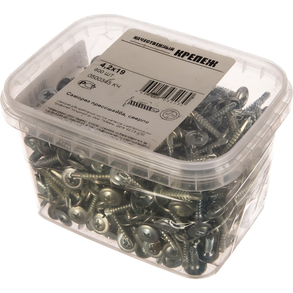 Саморез с прессшайбой Качественный крепеж 4,2х19 сверло 600 шт 0500345 КЧ