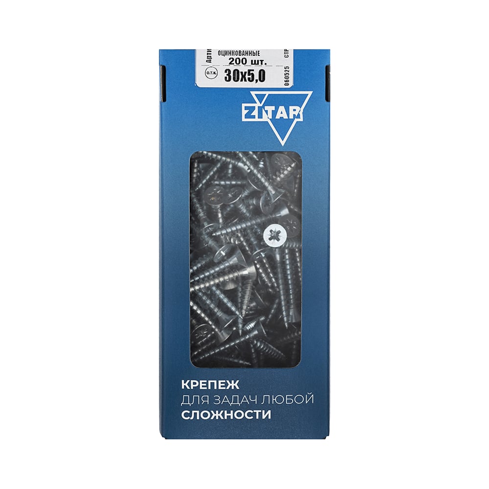 Универсальные саморезы, оцинкованные, 30x5,0 мм, 200 шт., коробка с окном Zitar 102197