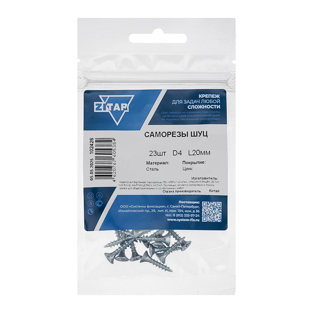 Саморез ШУц с потайной головкой 4,0x20 мм, 23 шт., пакет Zitar 102426