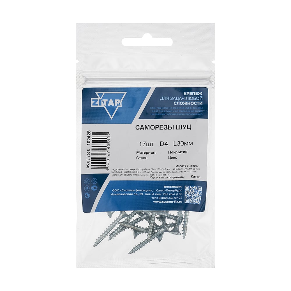 Саморез ШУц с потайной головкой 4,0x30 мм, 17 шт., пакет Zitar 102428
