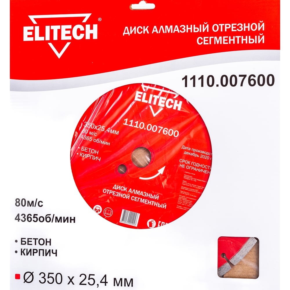 Сегментный алмазный диск по бетону, кирпичу Elitech 1110.007600