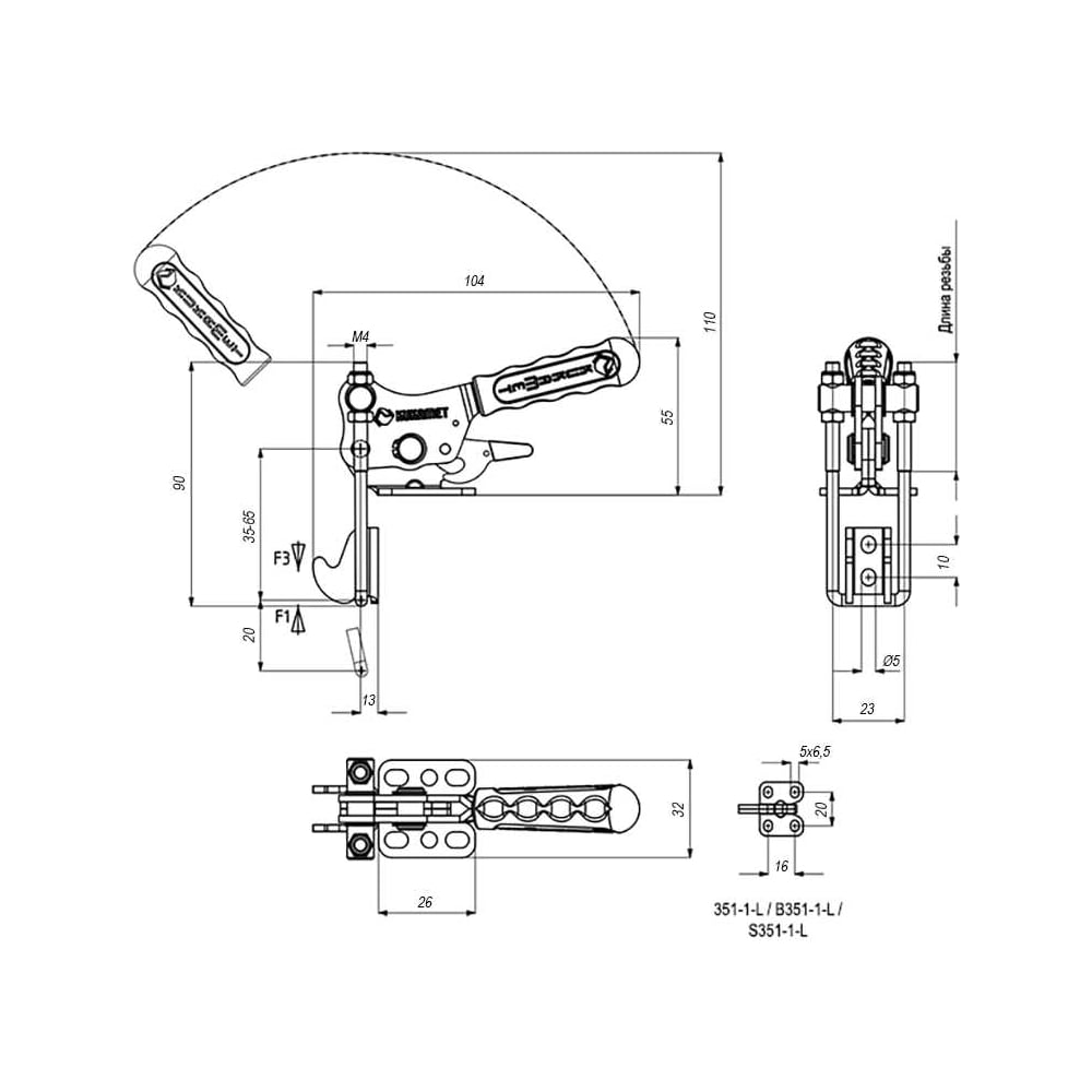 Вертикальная защелка из нержавеющей стали со стопорной рукояткой, макс. усилие 100 кг KUKAMET S351-1-L