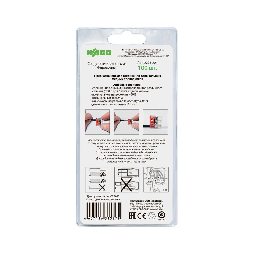 Клемма WAGO 2273-204 100 шт. 2667